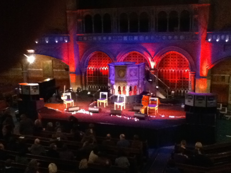 Now I like a nice amped and noisy gig with the best of them but there is something particular and special about an essentially acoustic show. There’s no sliding over the odd mistake, no covering up with an extra flourish or shouting your way past the fact that you didn’t quite nail that note. So a show like tonight really highlights the qualities of superb musicianship, talent and artistry. I had rather expected the charming Heidi Talbot to be acting as support, but none of it. From the off we had Messrs McCusker, Drever and Woomble onstage with Ms Talbot and the understated Mr McKenzie (hope I remembered this right, can’t seem to check him out, apologies ! – you can see now that I got that totaly wrong 😦 ) Kevin McGuire on upright bass (many thanks to Fiona Clark for the very welcome correction). The evening was a satisfying mix of material from everyone’s catalogue.
