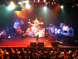 Around 9pm The Decemberists came on for what was to be a two hour set. They were introduced by an announcement from a Sam Adams pretender (mayor of Portand for those of us from out of state) who encouraged us all to engage with our fellow gig-goers. This sort of jovial audience connection became a theme of the evening – how much more enjoyable is it when a band makes the effort, not just to ‘do their thing’ but also connect with the audience? It creates an intimacy and sense of community