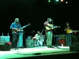As you would expect all were consummate professionals – in addition of course to front man Robin Pecknold’s trade mark vocals (despite the journey through puberty he felt  he was taking during the evening) and acoustic guitar, Skyler Skjelset put in some excellent, understated guitar and mandolin, and Christian Wargo great bass and harmonies. But I couldn’t take my eyes off of Josh Tillman, he was a revelation, his drumming was never less than outstanding, fluid and precise. Tillman gave the how show a different feel from the times I seen Fleexes before, he drove it along, adding power with an urgency and insistence. Material such as the Foxes could, were you not careful, slip into the twee but the muscularity of the show just showed how close harmonies, deft melodies and expert musicianship can still combine to provide music than is determinedly contemporary but interlaced with the grounding elements of the traditional.