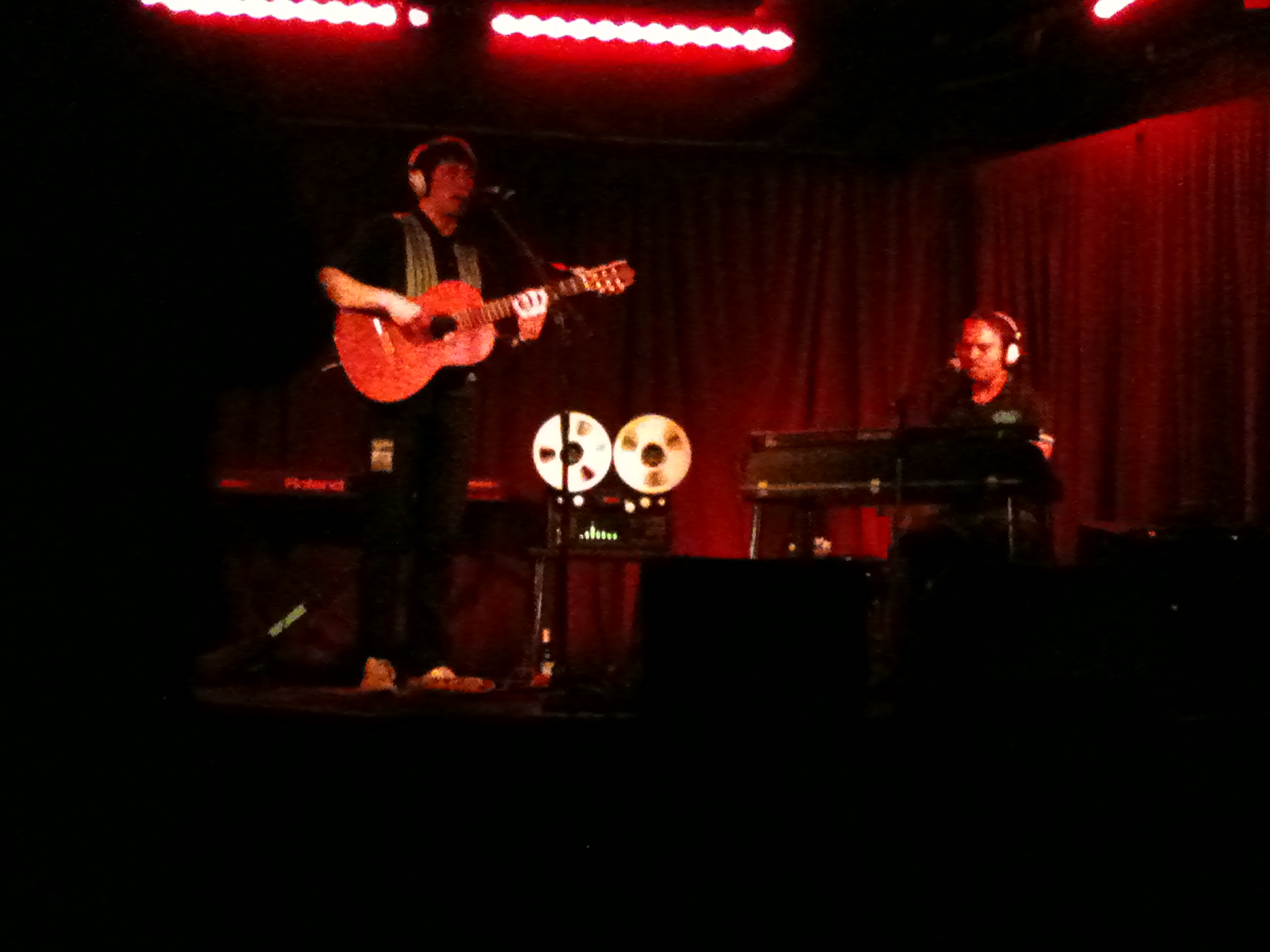 Even at this time the stage seemed oddly empty; a couple of keyboards and a large reel to reel machine looked like we had turned up but the talent had forgotten . Clearly not a full band gig for Mr Hawksley Workman!