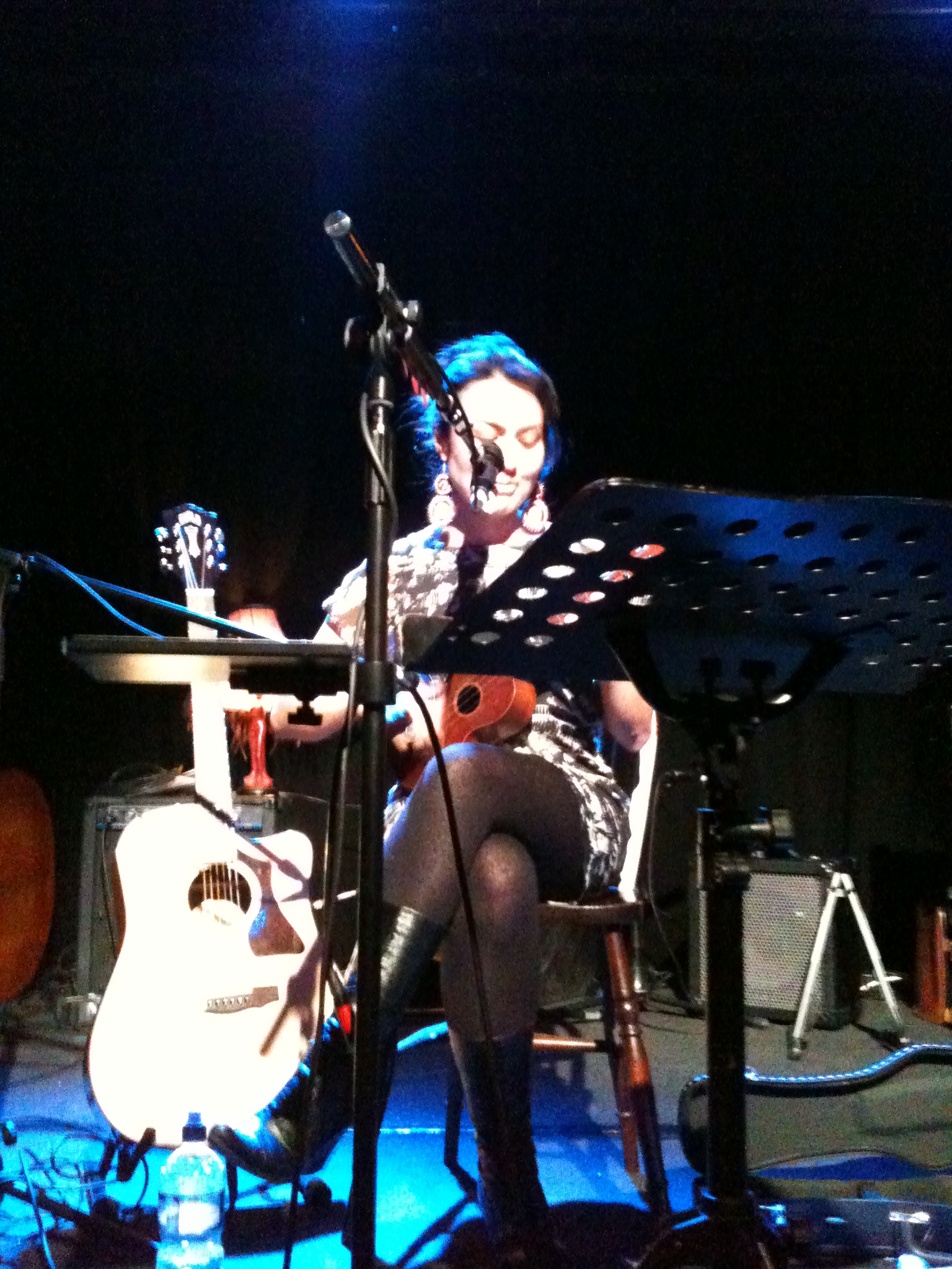 The teeny tiny Borderline is tucked away downstairs just yards from the Friday night alcohol swilling young things of media Soho, the flirtatious Old Compton Street melange and the vaguely lost tourists of Charing Cross Road. Here I am slumped on the floor up against the unoccupied sound desk with my Coke, having earlier already too greedily necked a large glass of red.
